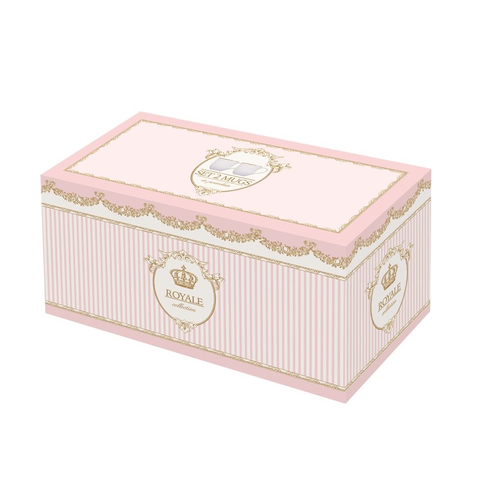 Zestaw porcelanowy składający się z dwóch kubków z kolekcji ROYALE w kolorowym opakowaniu. Produkt wykonany ze średniej grubości porcelany, ze złoconymi brzegami. Nie nadaje się do mycia w zmywarce, ani używania w kuchence mikrofalowej. Wymiary: pojemność 300ml, wysokość: 10 cm, średnica u góry: 8,5 cm.